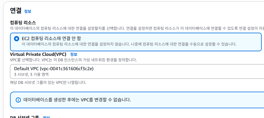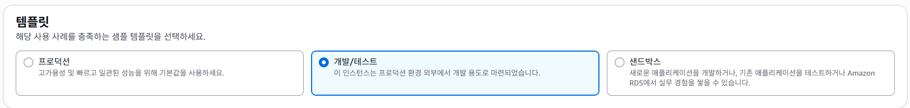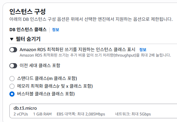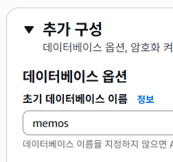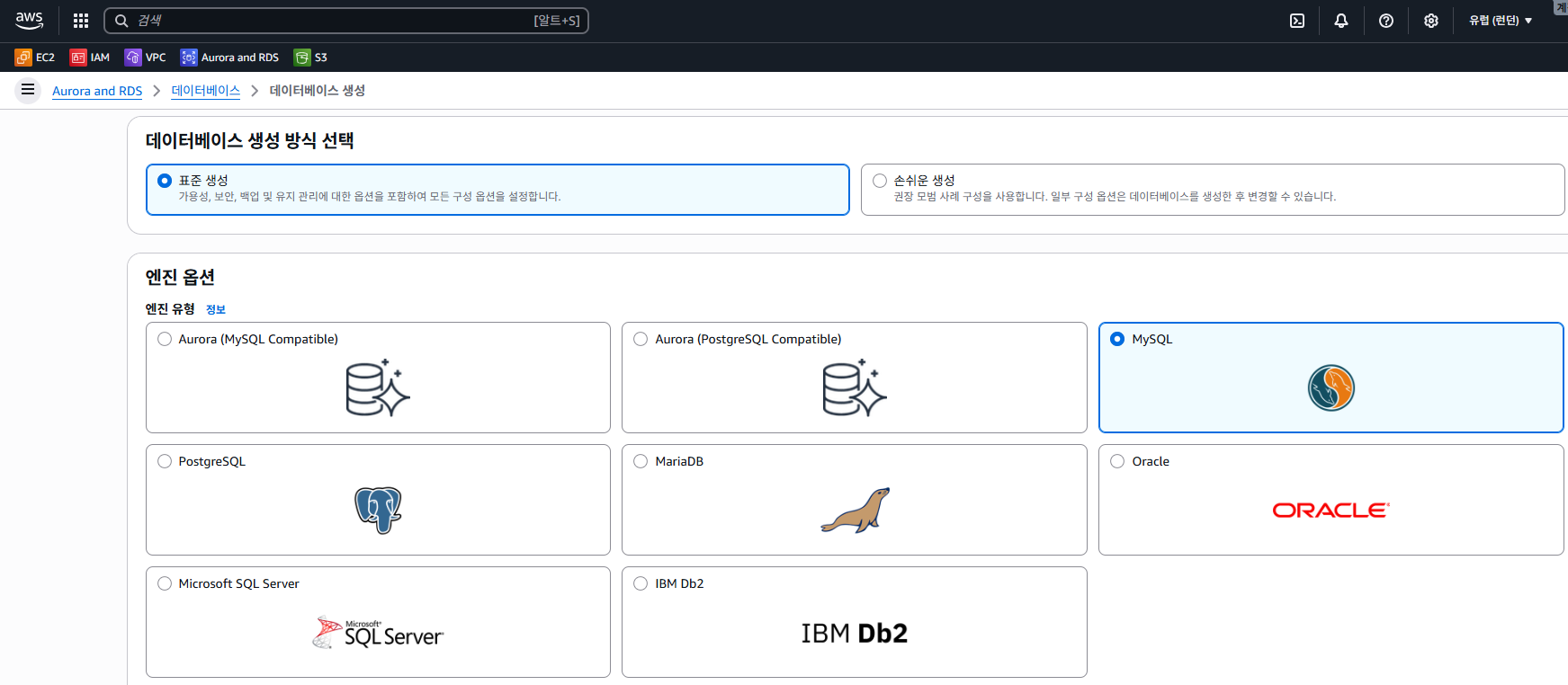 - Aurora and RDS > 데이터베이스 > 데이터베이스 생성