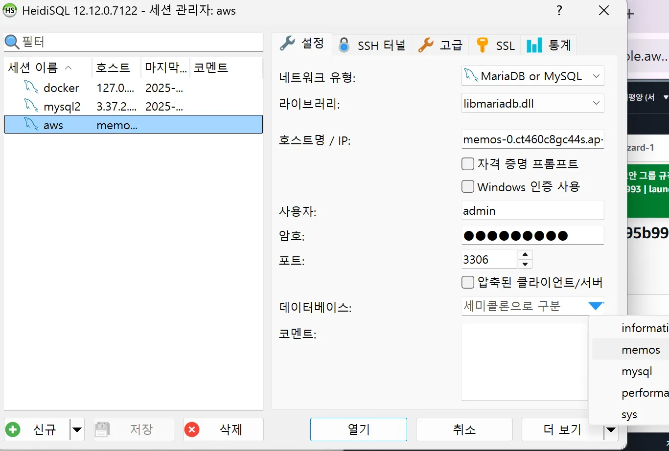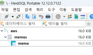 MySQL, RDS 이용한 memos 데이터베이스 연동