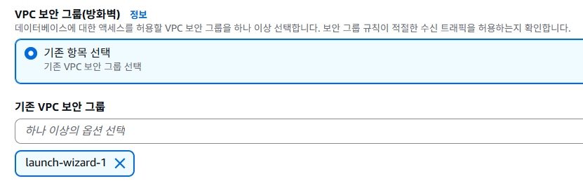 vpc 보안그룹 (방화벽) -> 인바운드 -> 차후 3306번 추가 필요
