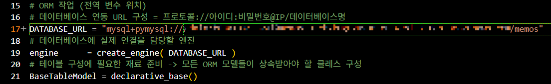 가린 부분의 문법은 관리자이름:데이터베이스 마스터 비밀번호@rds로 생성한 데이터베이스 엔드포인트이다.