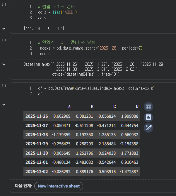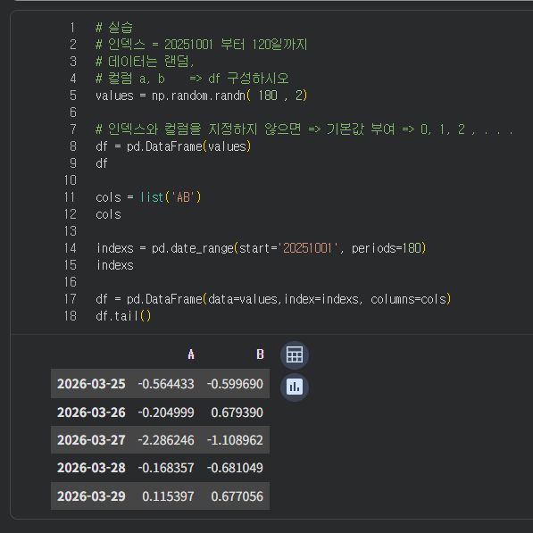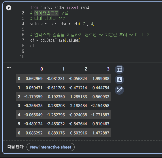 - DataFrame = 인덱스 + 컬럼 + 데이터