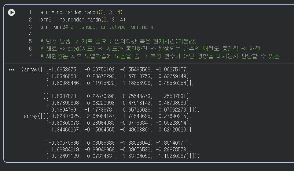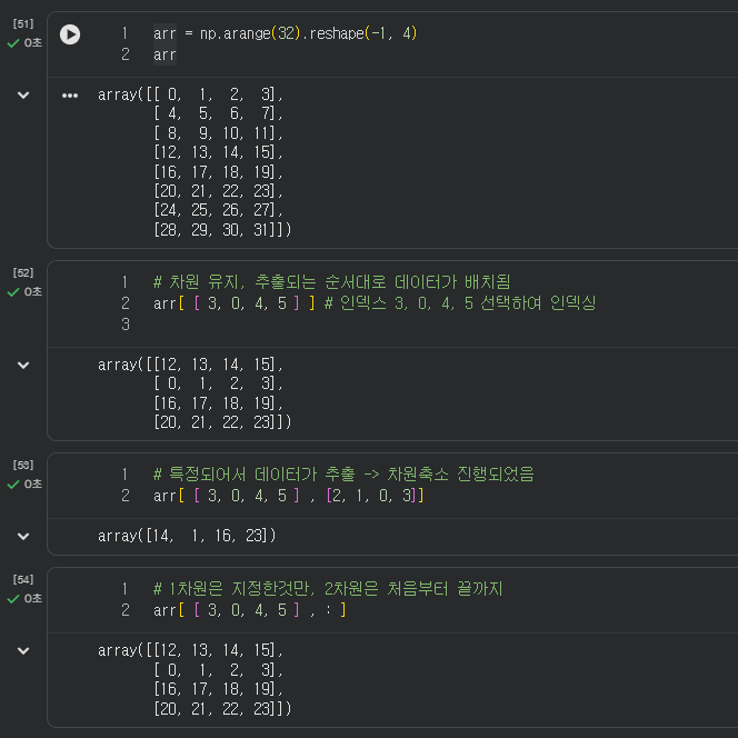 - 2d:매트릭스-> 인덱싱 -> 1d:벡터 -> 인덱싱 -> 0d:스칼라