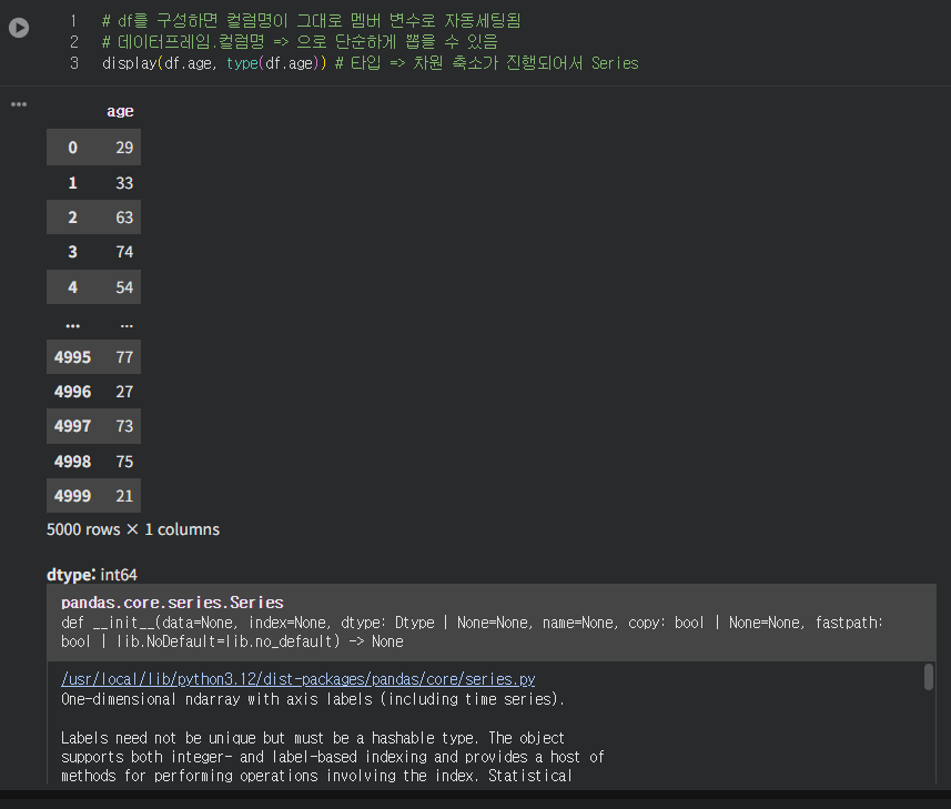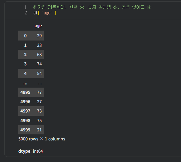- DataFrame 인덱싱 => Series 인덱싱 => 값(스칼라)