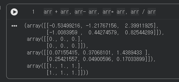 - 결론 : 배열의 모든 구성원에 일일이 스칼라 값이 접근하여서 연산 수행함