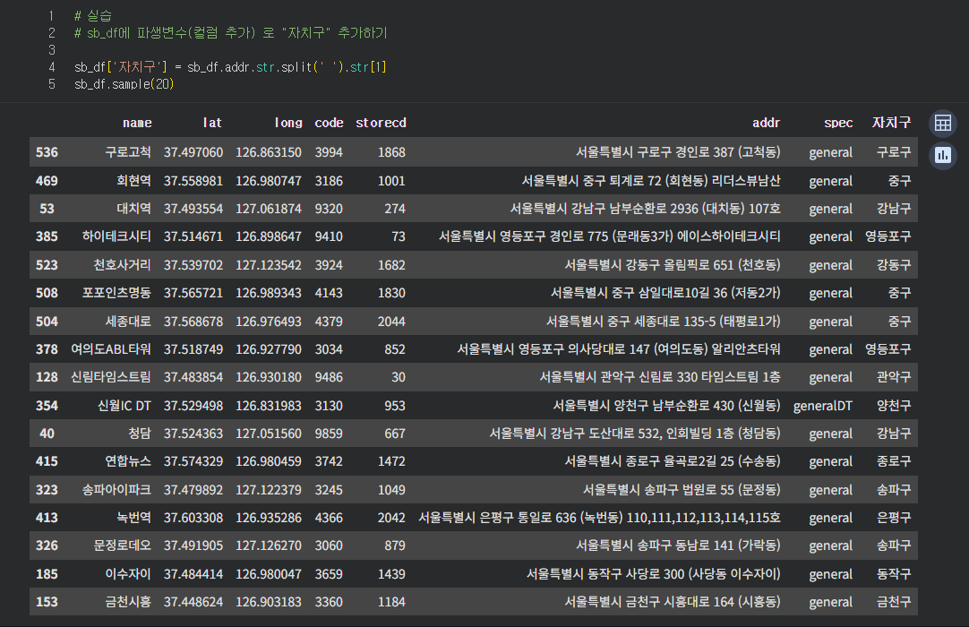 그리고 자치구명을 추출해본다.