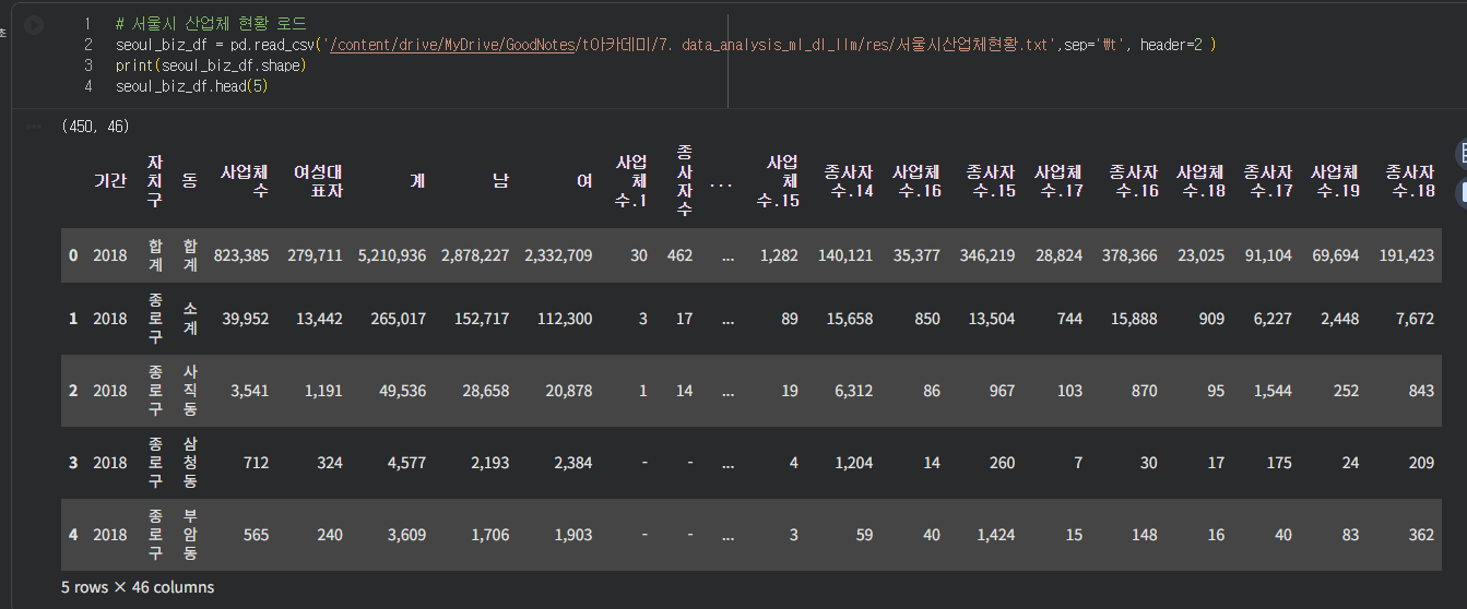 그 다음 서울시 산업체 현황 파일또한 로드해온다.