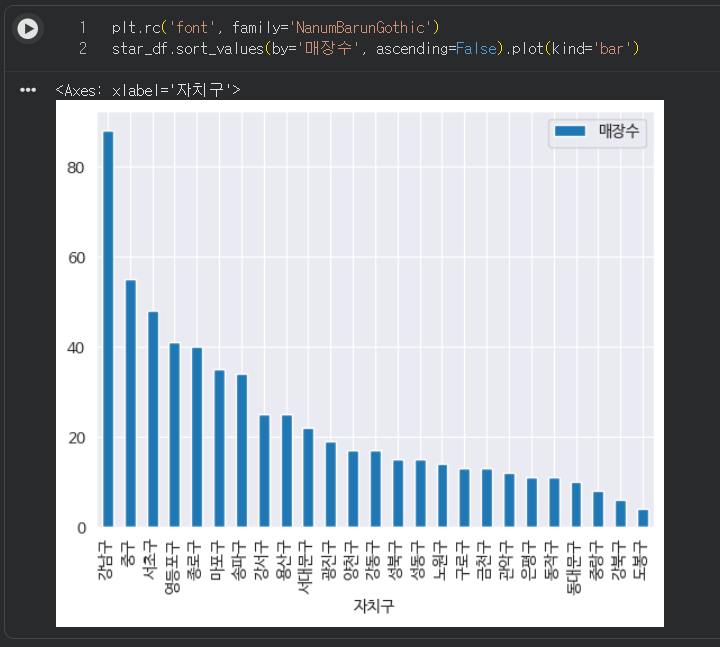 '자치구, '매장수' 컬럼을 기준으로 데이터를 시각화하라고 명시해뒀다.