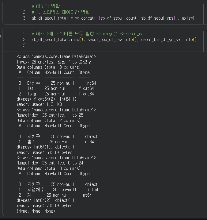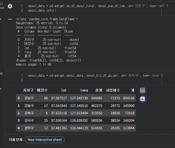 그 값을 '자치구'컬럼에 새로 추가해서 컬럼을 만들었다. 그래야 다른 데이터들이랑 merge할 수 있기 때문에