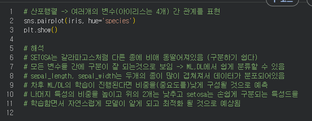- 아이리스 기준에서는 종 별로 겹치는 구간이 보임