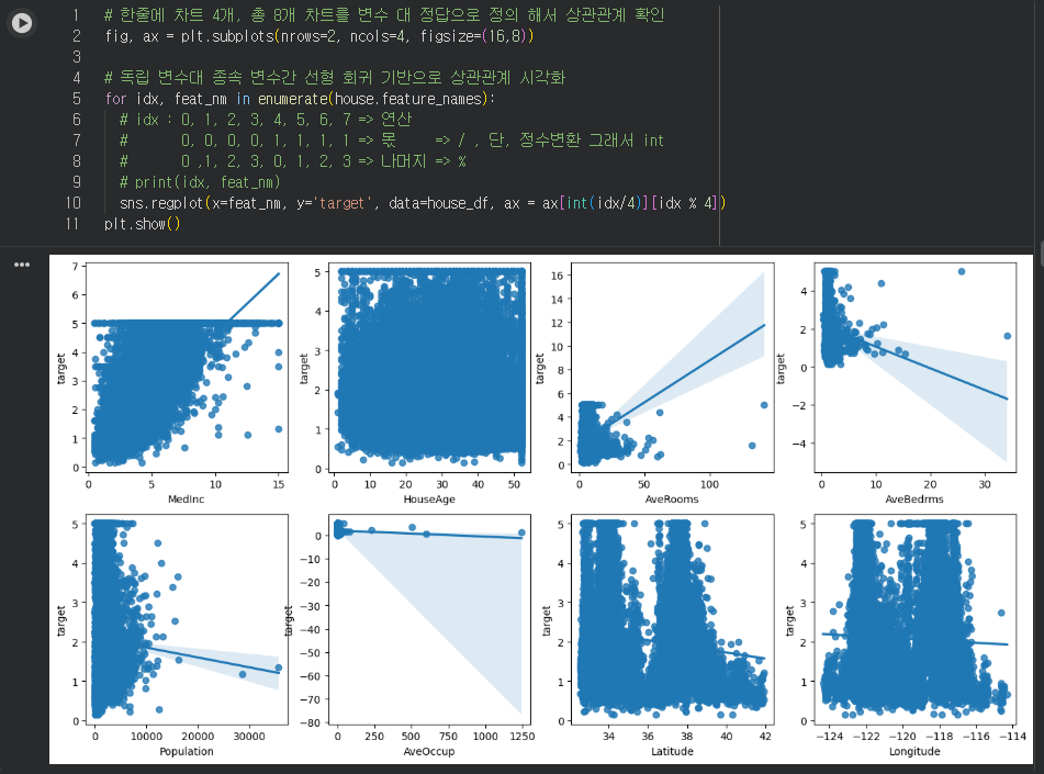 - 'MedInc' : + 양의 상관관계