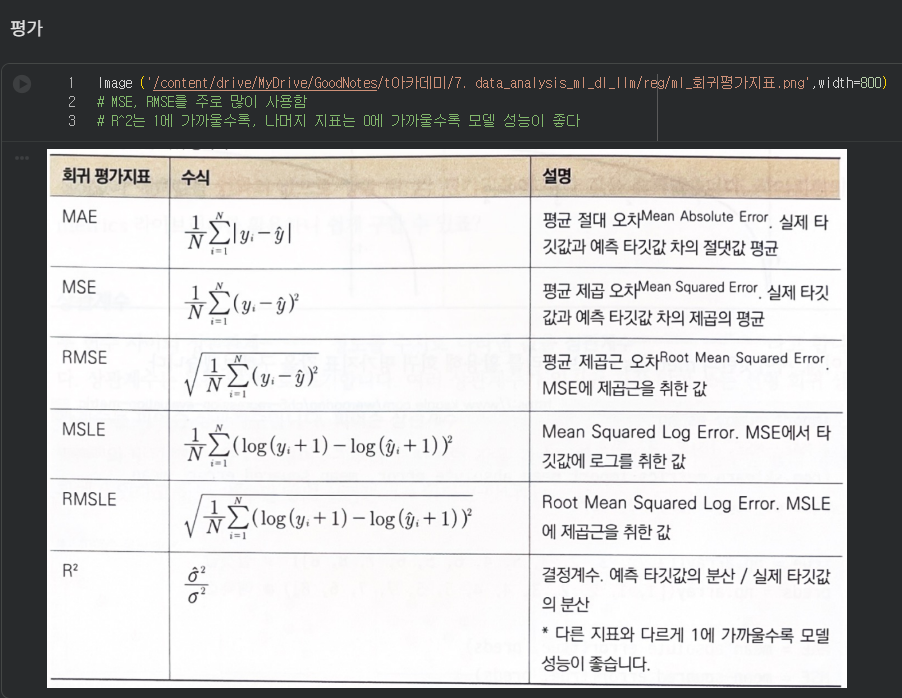 - 오차값이 0에 가까울수록 성능 좋은 모델
