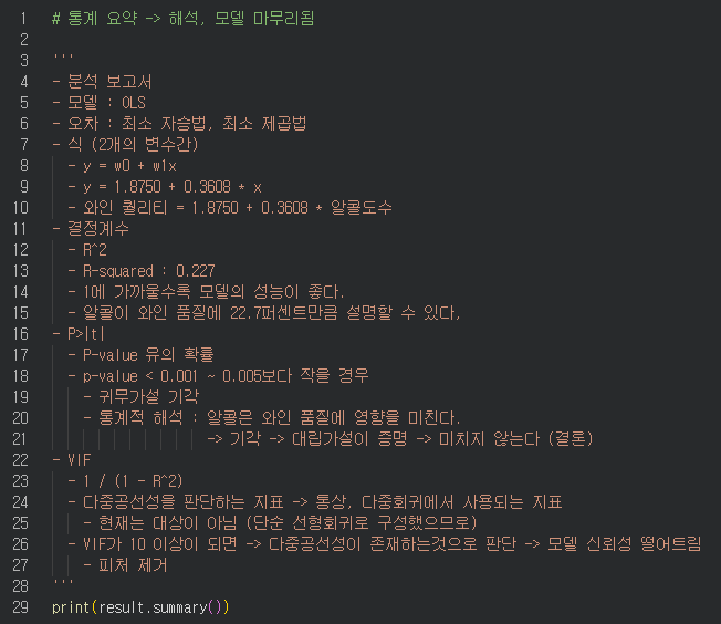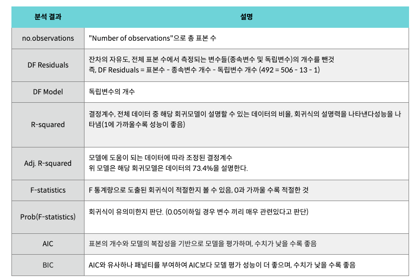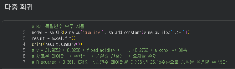 - 8개의 독립변수와 1개의 종속변수간의 관계 정의 -> 다중회귀