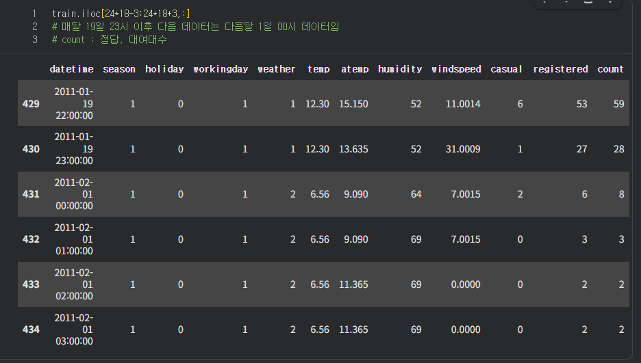 train데이터는 1일~19일까지이다, 그것을 먼저 확인해준다.