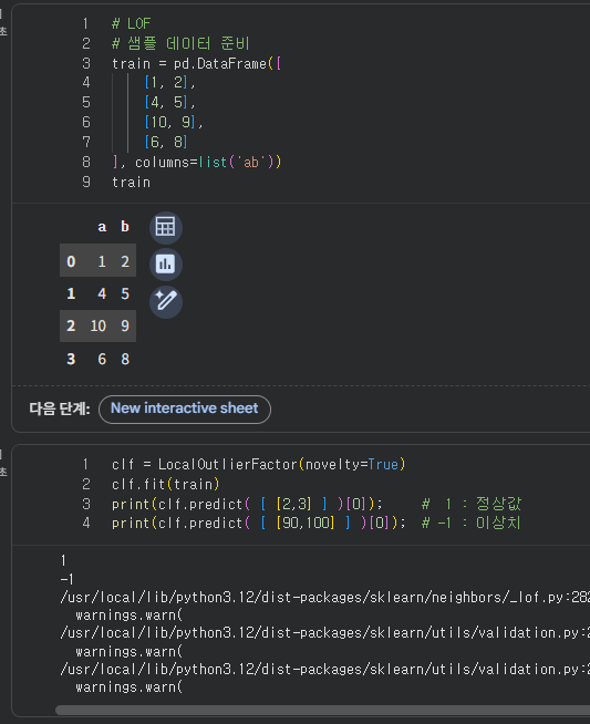 특정 범위 내, 혹은 가까우면 정상값으로 나온다, 말도안되는 값을 넣으니까 이상치가 나오는 모습