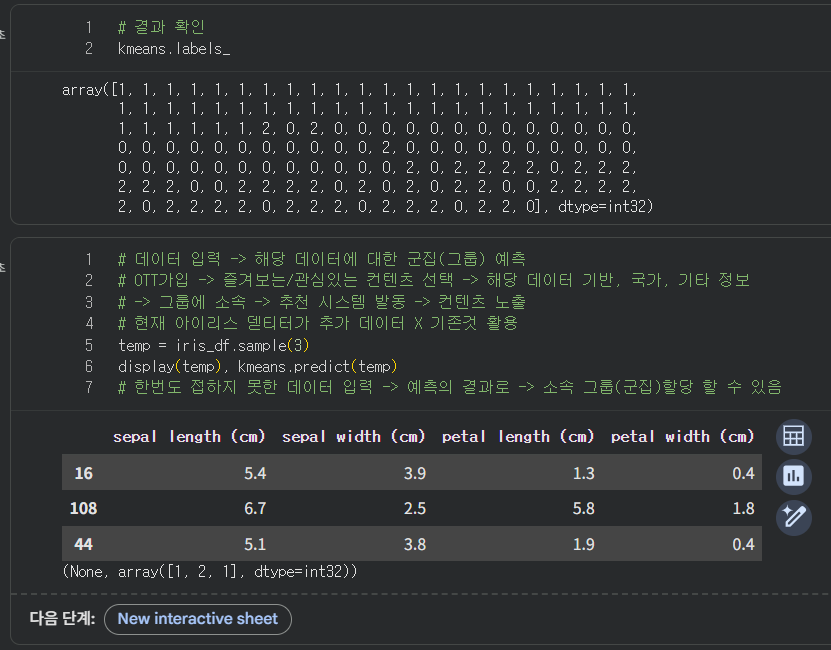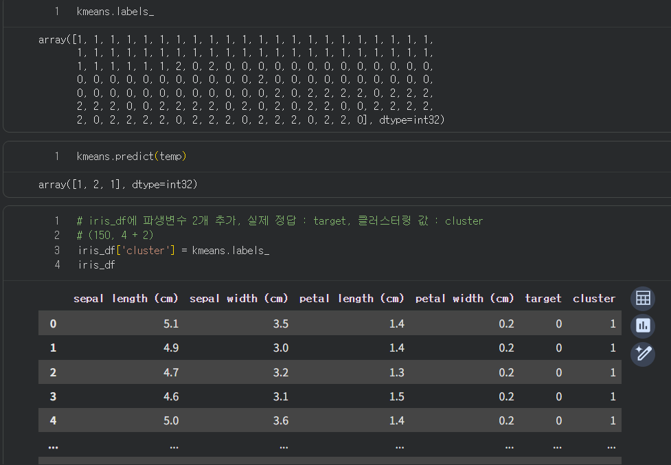 labels = model.fit_predict(피처데이터) # 훈련 -> 군집 레이블값 반환