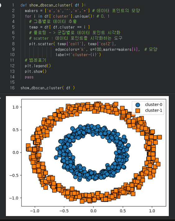 - 군집의 개수를 알아서 계산함