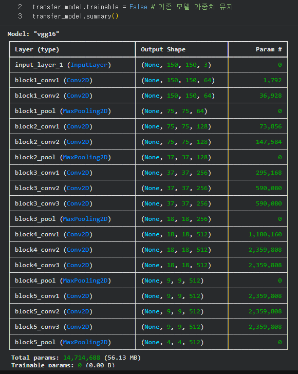 Non-trainable params: 14,714,688 (56.13 MB)