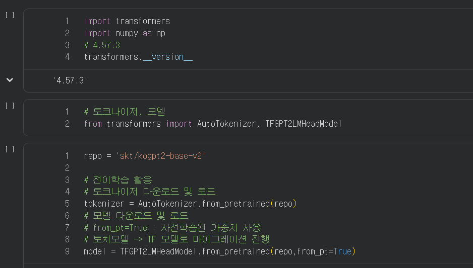 가져온 모델에 별 다른 수정을 하고 코드를 많이 입력하지 않아도 가져온 모델로 한국어 데이터를 읽어와서