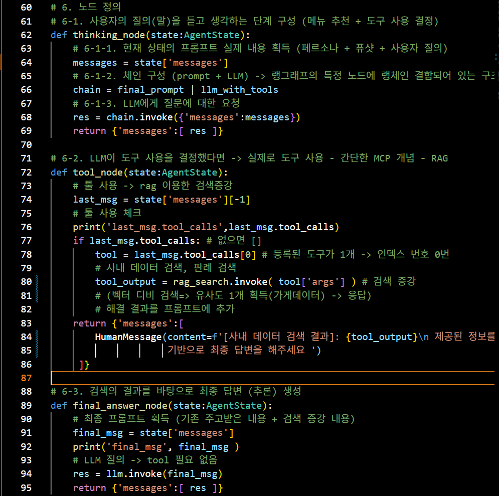 # 6-1. 사용자의 질의(말)을 듣고 생각하는 단계 구성 (메뉴 추천 + 도구 사용 결정)