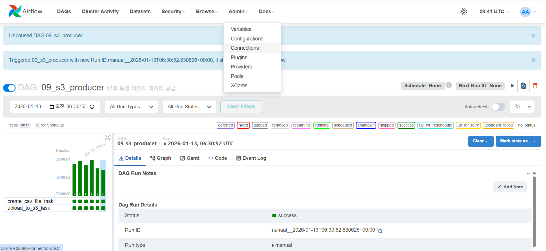 - 3개의 DAG를 구성하여 연결
